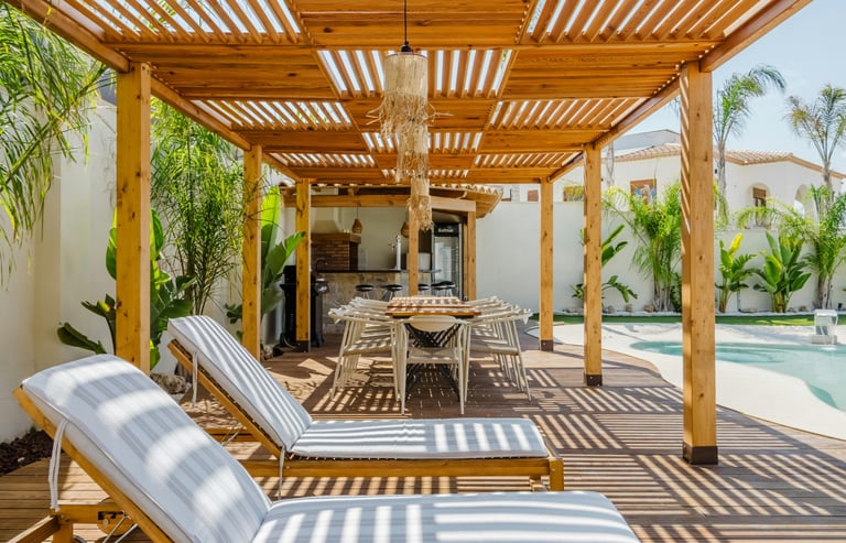 Nous concevons et installons des terrasses (decks), pergolas, bungalows, varangues et kiosques en bois, pour des moments de détente parfaitement intégrés au paysage de votre lieu de vie.